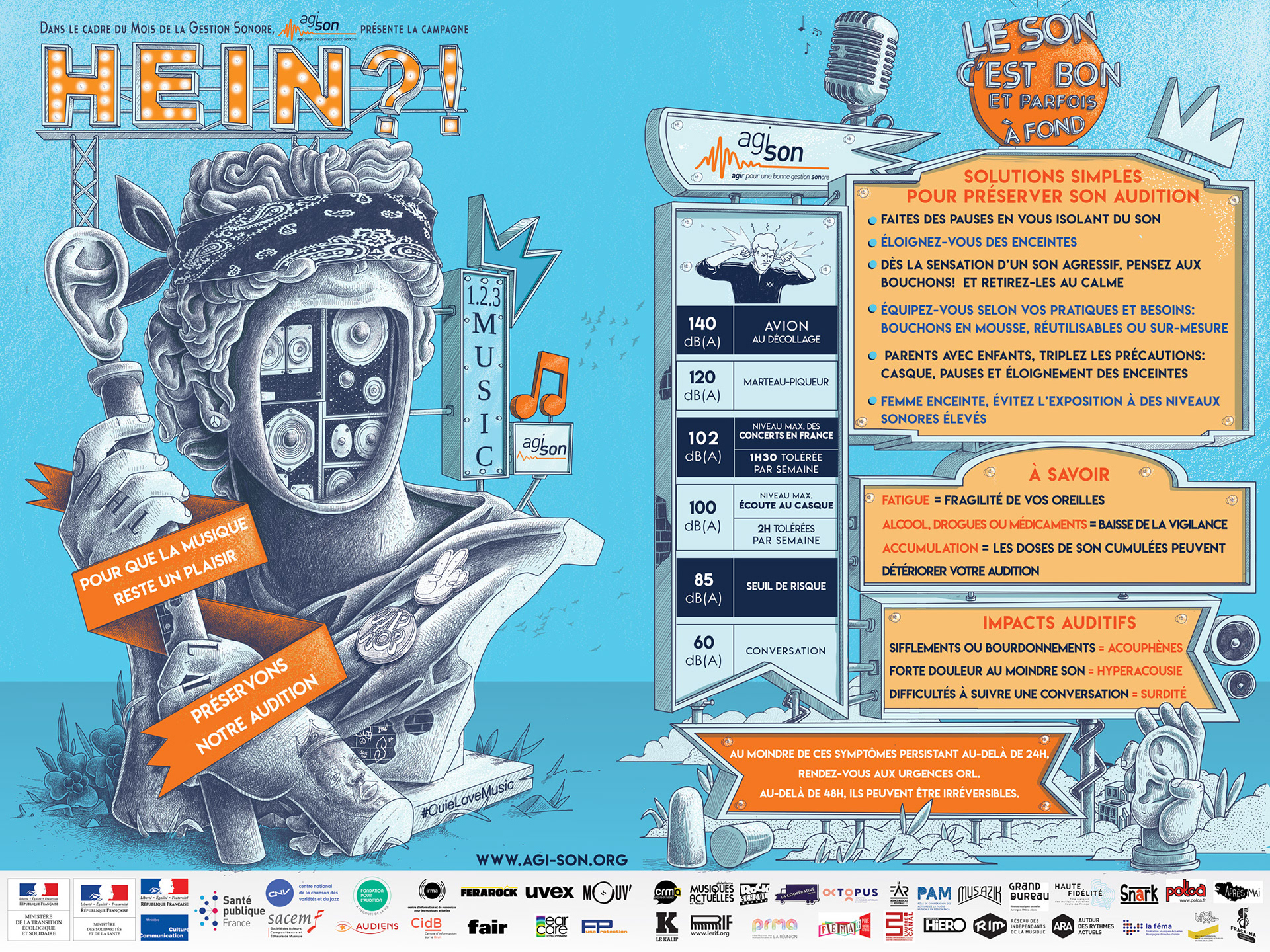Projet réalisé pour l'association Agi-son pour la campagne nationale de prévention sonore. Chartre graphique et déclinaisons. (affiches, flyer, carte de visites, etc...) Animation vidéo réalisé en collaboration avec Gregory Banas
