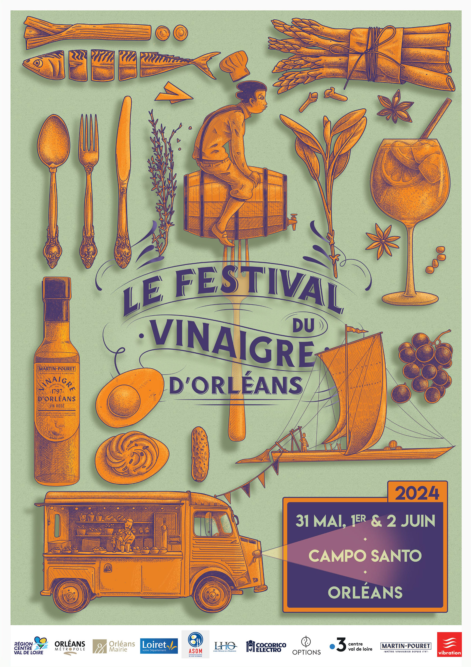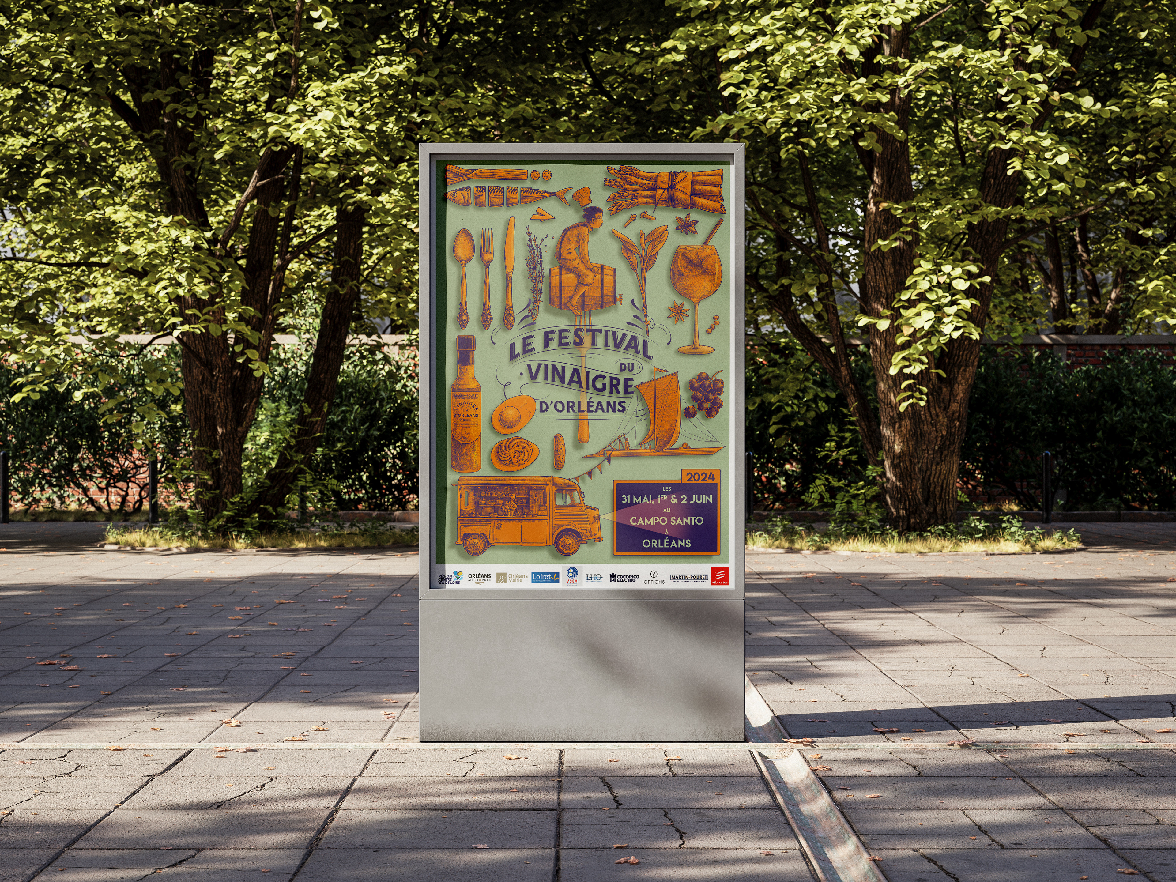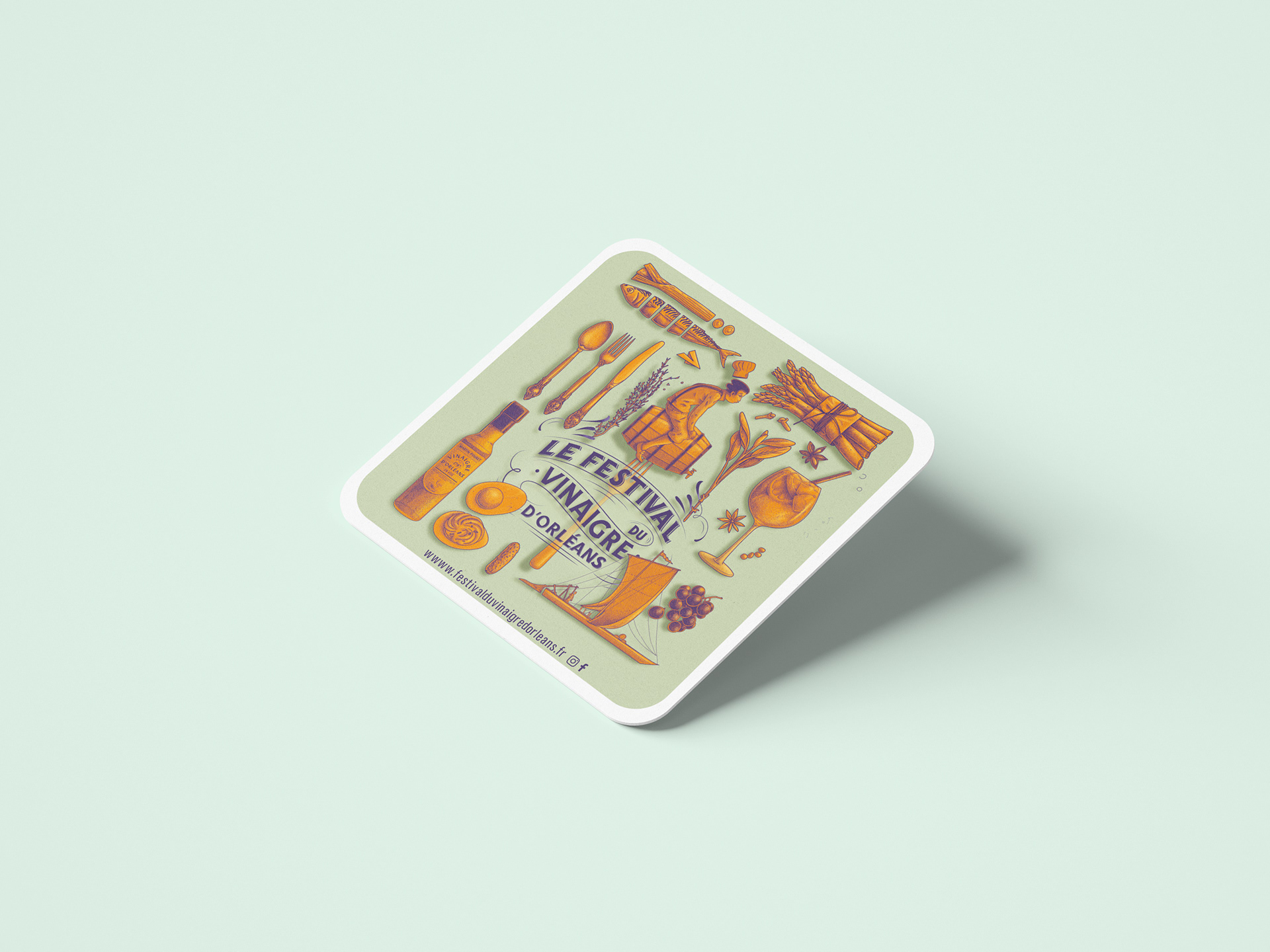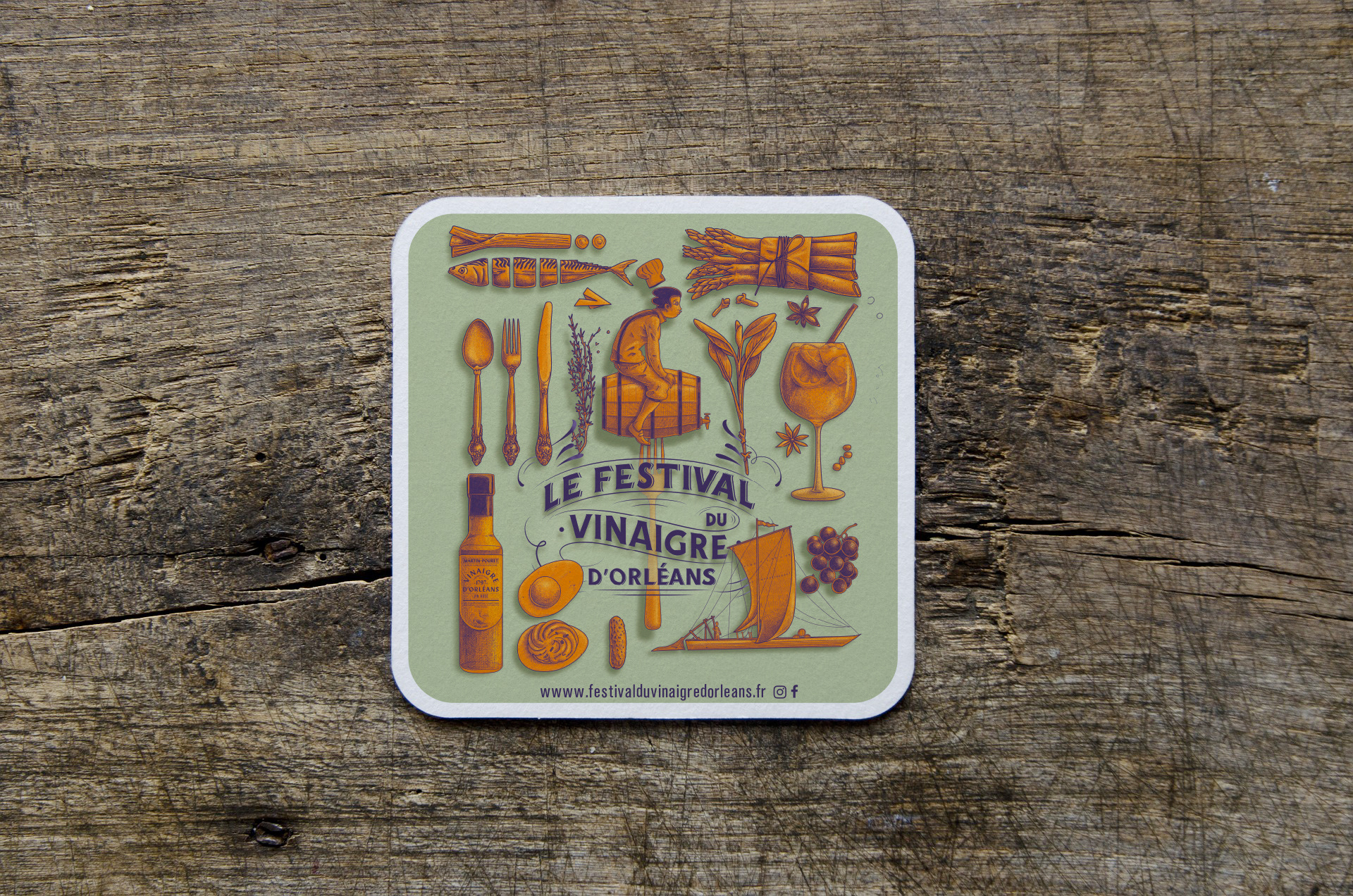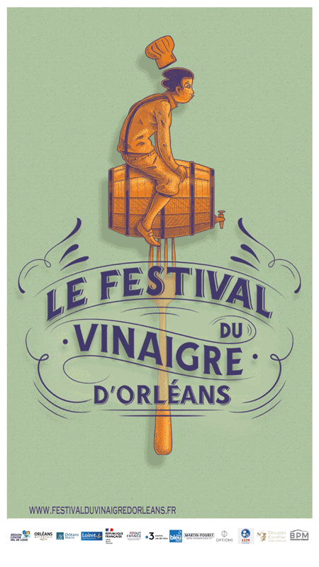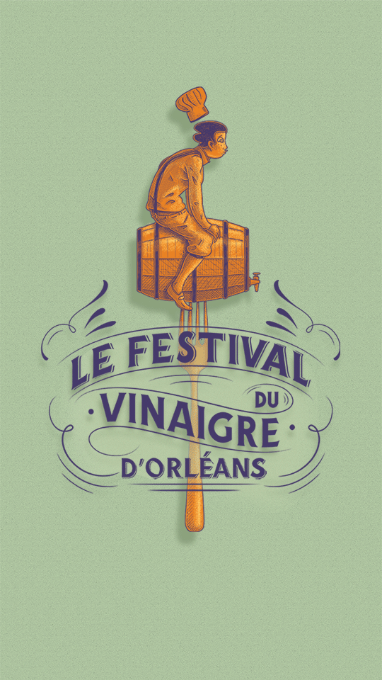Identité visuelle du nouveau Festival du Vinaigre d'Orléans, réalisée par notre studio Œil pour Œil.